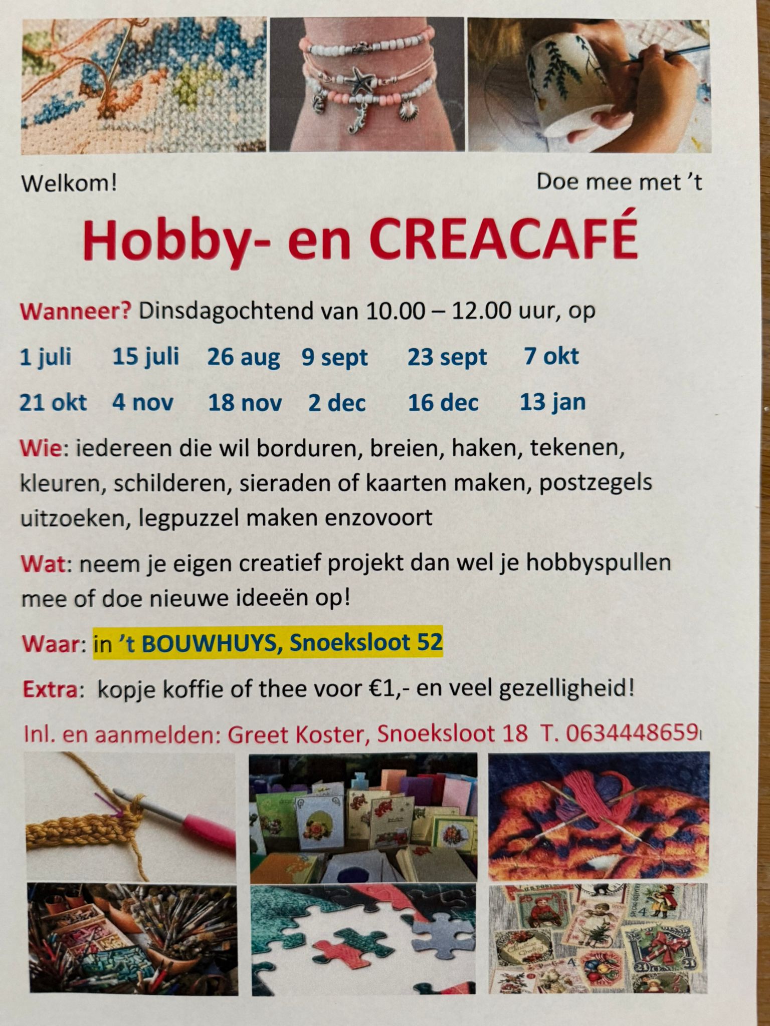Iedereen kan komen kennismaken. Een sapje en knabbeltje staan klaar. Ga eens kijken!